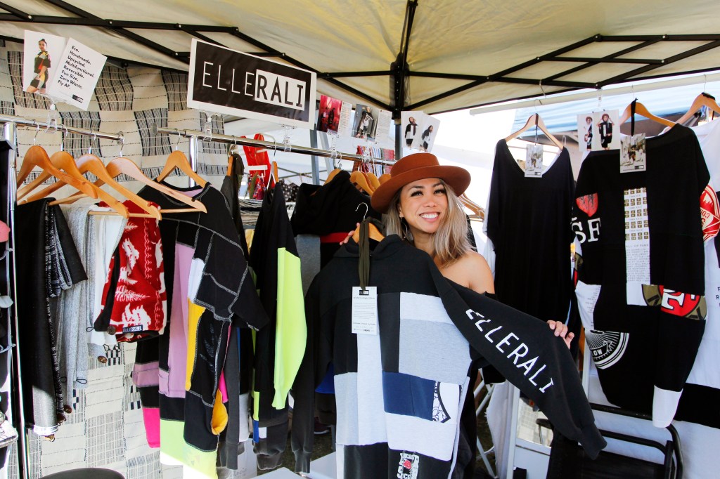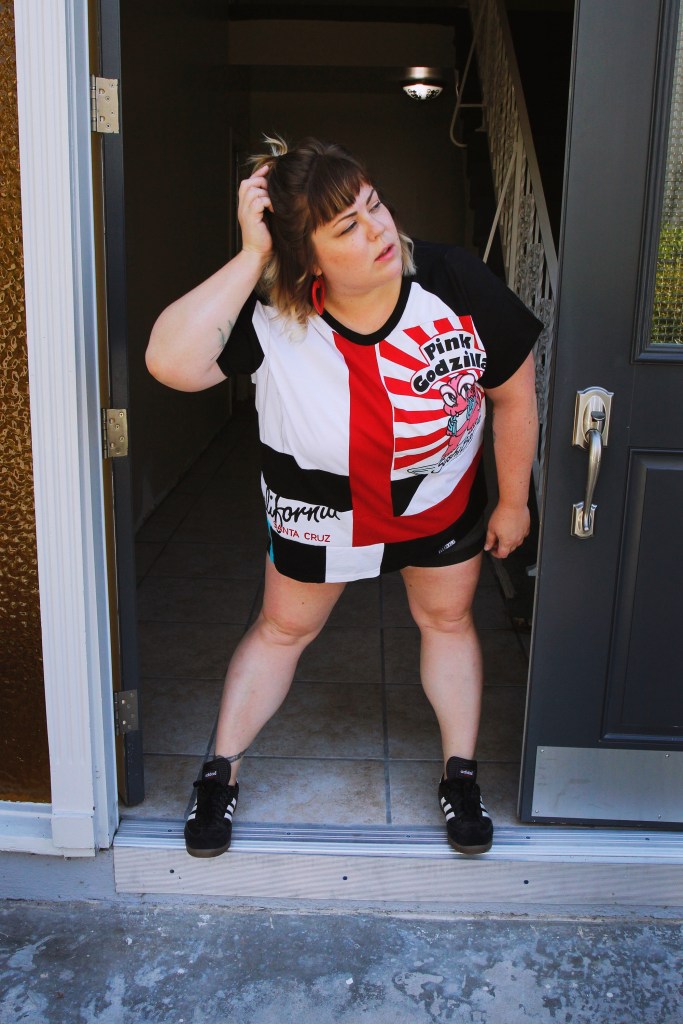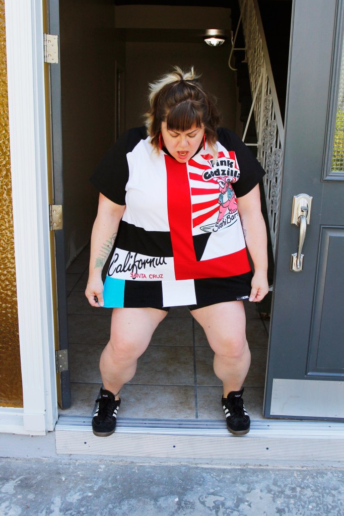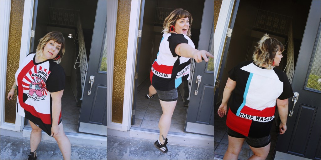 It’s now been two years since she started ELLERALI, and I finally have an ELLERALI piece of my own – a custom shirt made out of old t-shirts from my college years. This was focused on a shirt I got but never wore and was from a well known sushi spot in Santa Cruz, called Pink Godzilla. It’s so fitting because the shirt is literally a common thread for me and Elle which makes this shirt that much more special. That, and I helped design, cut and sew it with Elle’s guidance!